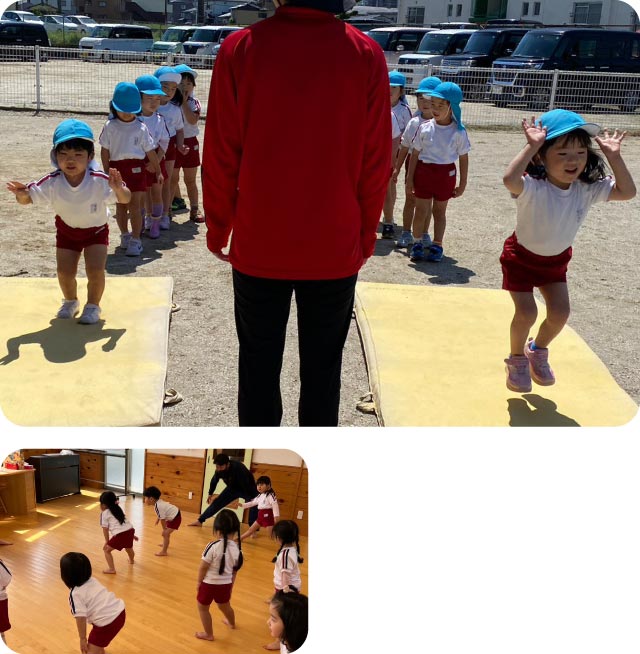 朝のご挨拶や出欠、体操をすることで、1日をスタートするリズムを作ります。
